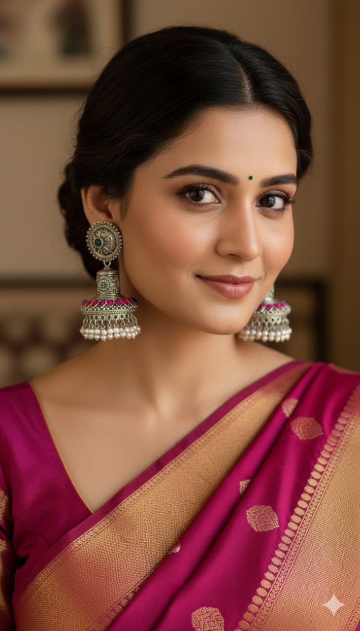 Perfect for weddings, festivals, and ethnic occasions, these statement jhumkas pair wonderfully with sarees, lehengas, and kurtis. A timeless design that blends traditional charm with bold colors.